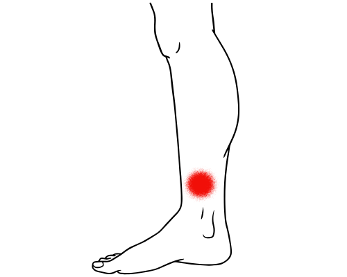 イラストにある赤い丸の部分の痛みがあり、触れると激痛と走り体重は足を地面に触れる程度しかできない状態でした。