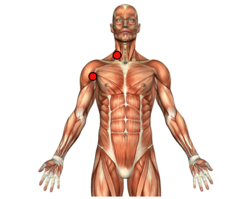 はじめに胸と腕の付け根、そして次に首のポイントを施術しました。