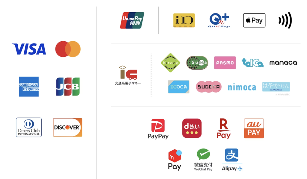 VISA, Master, AMEX, JCB, Dinnersなどのクレジットカード