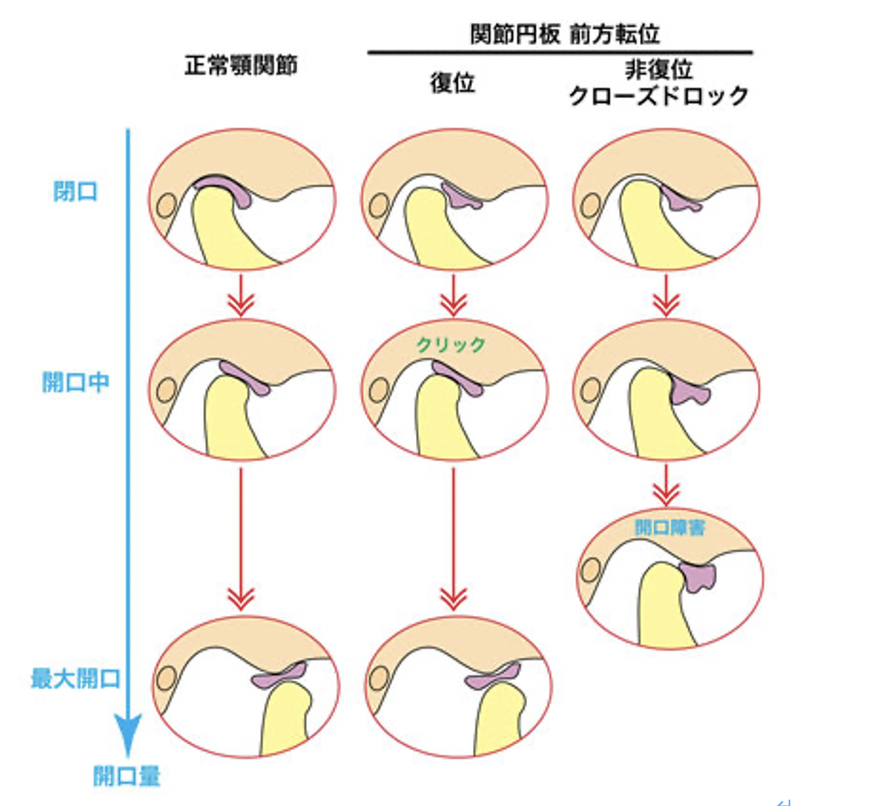 その結果、開口障害が起こります。(関節円板が原因)
